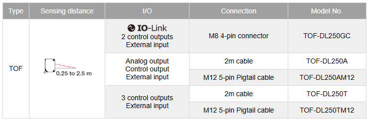 De TOF-DL serie van Optex FA is een ultracompacte Time-of-Flight sensor die nauwkeurige afstandsmetingen mogelijk maakt tot 2.5 meter. De sensor meet de tijd tussen het zenden en ontvangen van laserpulsen en levert daarmee stabiele detectie, ongeacht kleur, materiaal of oppervlakte van het te detecteren object.
